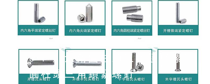 上。末端為平端的螺釘,接觸面積大,頂緊后不傷零件表面,用于頂緊硬度較大的平面或經(jīng)常調(diào)節(jié)位置的場(chǎng)合。末 端為圓柱端的螺釘不損傷零件表面,多用于固定裝在管軸(薄壁件)上的零件,圓柱端頂入軸上的孔眼種,靠圓柱 端的抗剪切作用,可